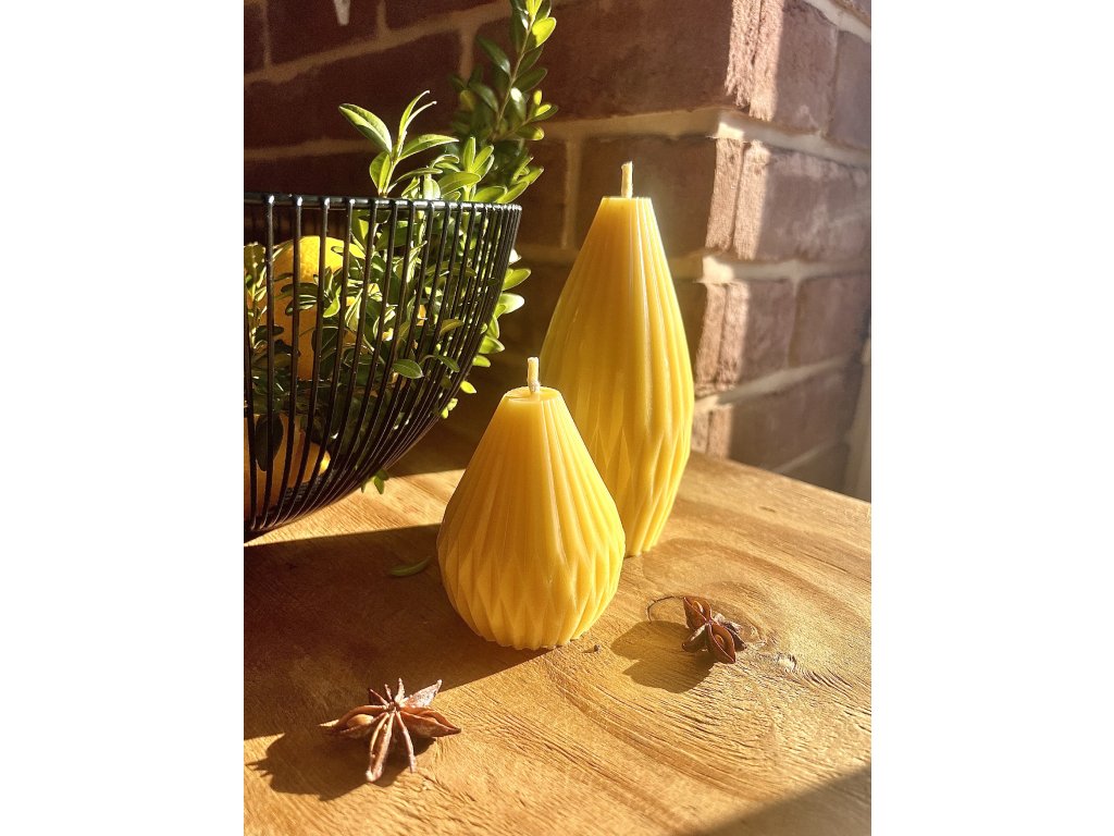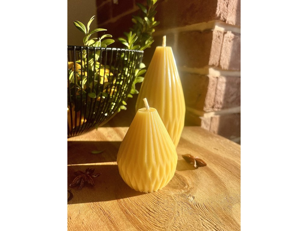 Naše odlévané svíčky ve tvaru kapky jsou dostupné ve dvou variantách - velká a menší, které lze zakoupit samostatně nebo jako set. Velká kapka okouzlí svou dominantní elegancí, zatímco menší dodá jemný půvab. Společně promění tvůj domov v oázu klidu a tepla.