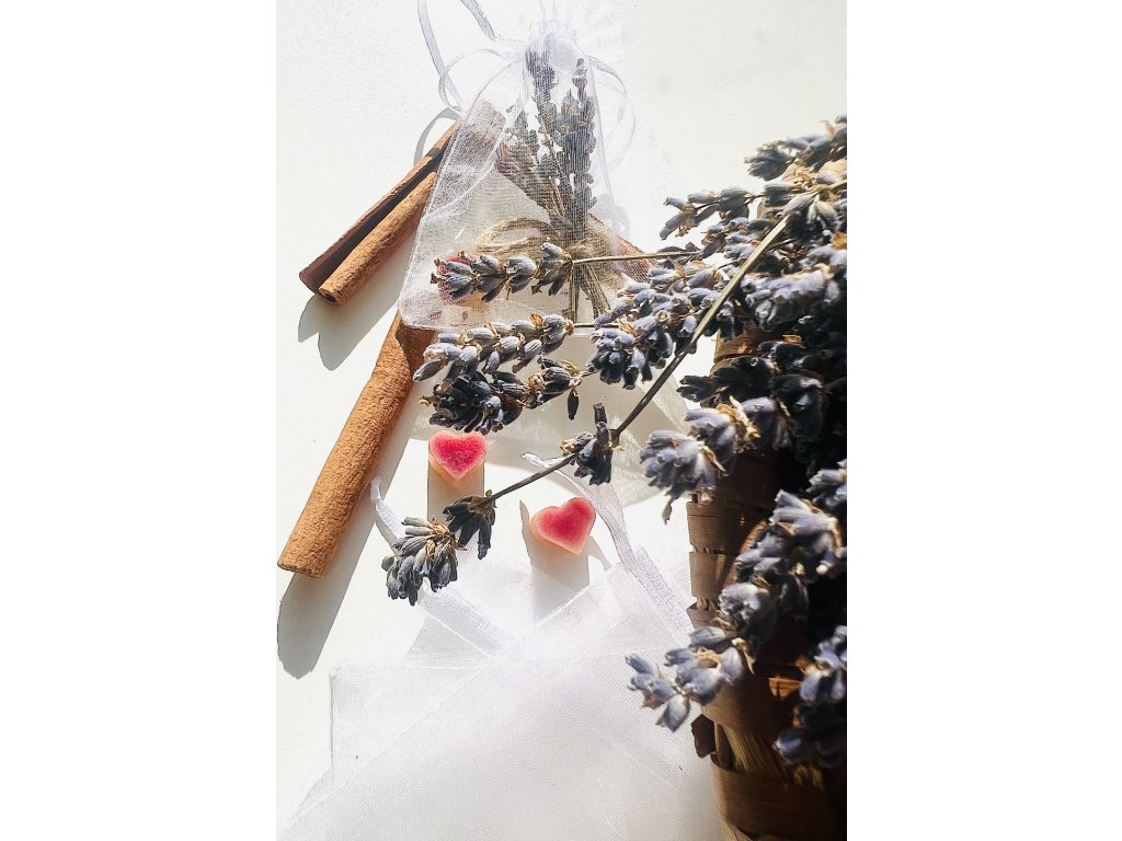 -Voňavý pytlíček - kouzelná kombinace levandule, skořice a malého srdíčka z včelího vosku (obarvené čistým přírodním práškem z ovoce), která provoní každý prostor a přinese pocit harmonie